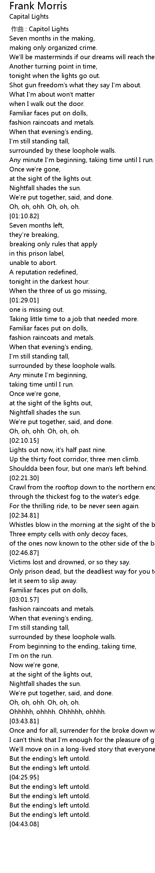 | [00:00.00] | zuò qǔ : Capitol Lights |