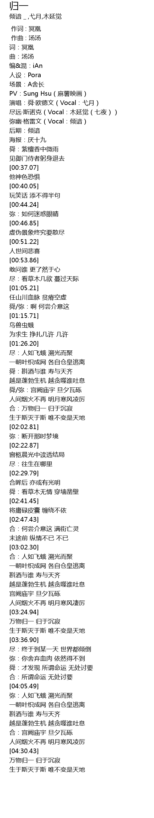| [04:31.00] | wàn wù guī yī guī yú chén jì |