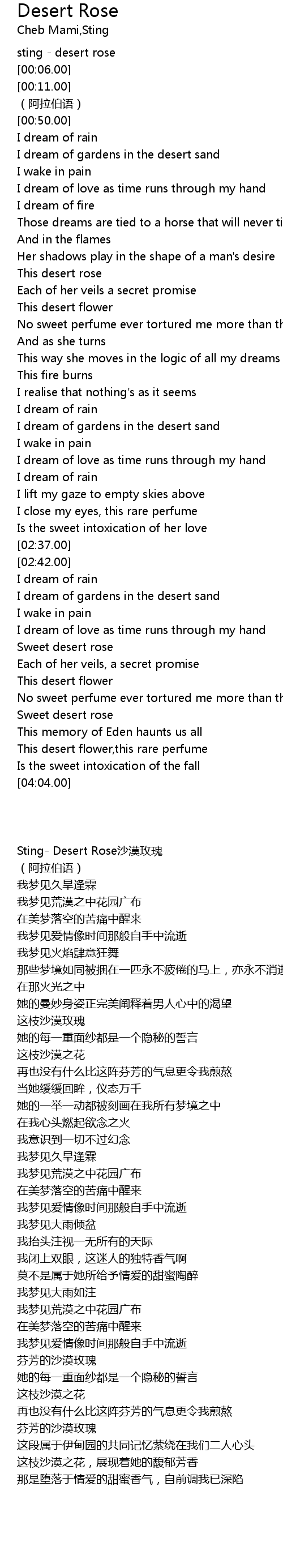 | [00:03.00] | Sting- Desert Rose沙漠玫瑰 |