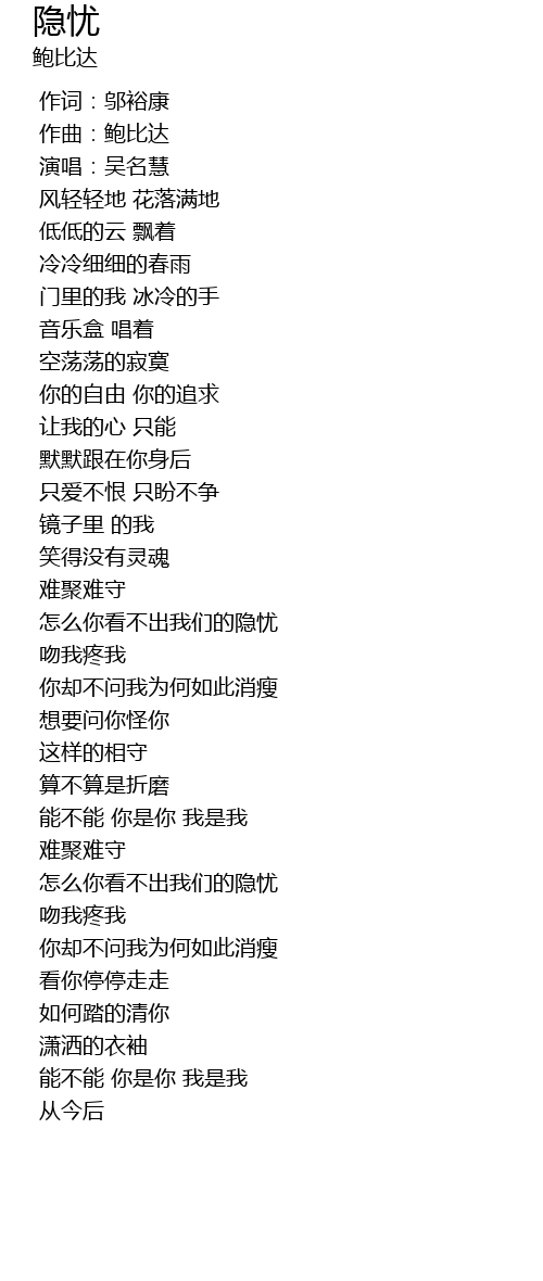 | [00:08.637] | 演唱:吴名慧 |