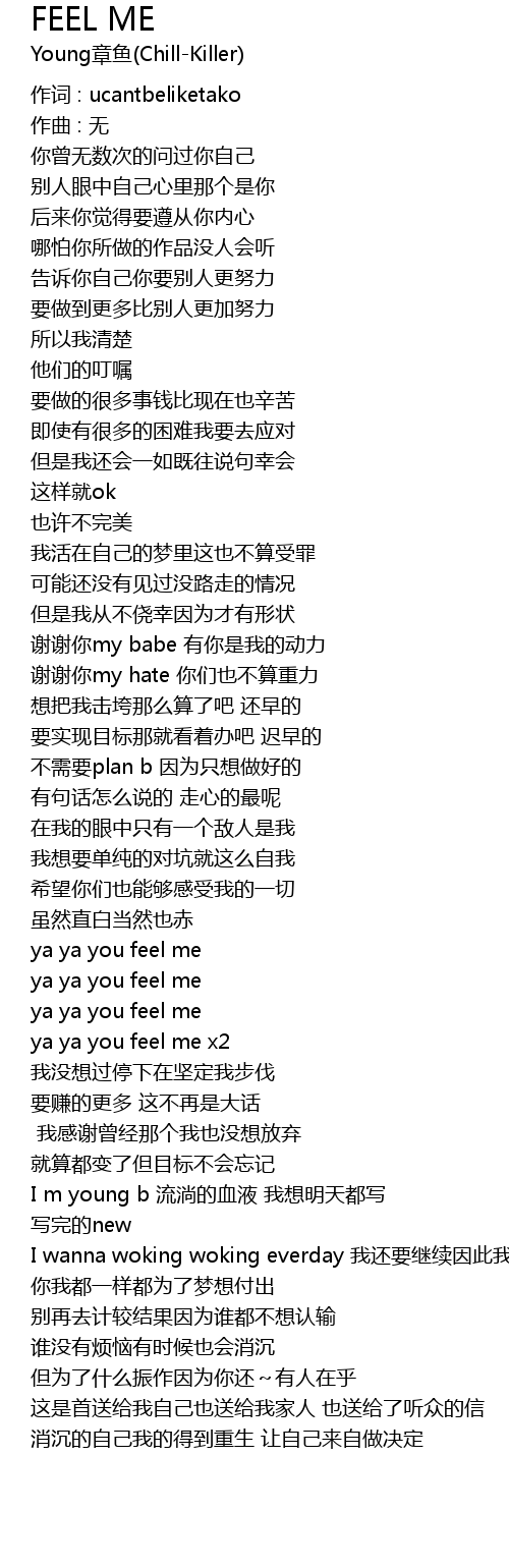 | I wanna woking woking everday wo hai yao ji xu yin ci wo bu fen zhou ye | |