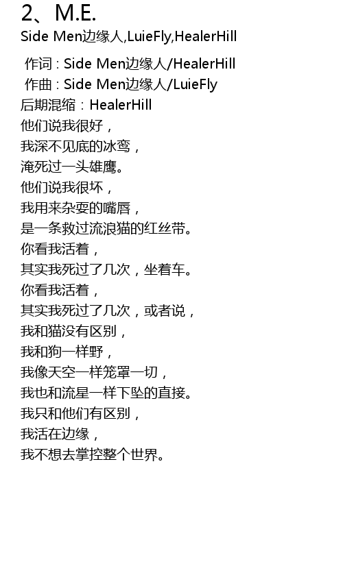 | 歌曲 | 2、M.E. |
