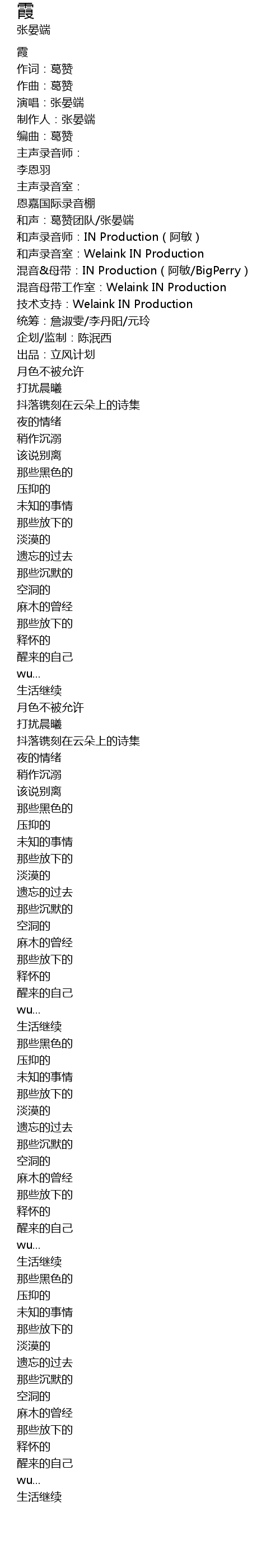 | 和声录音师:IN Production(阿敏) | |
