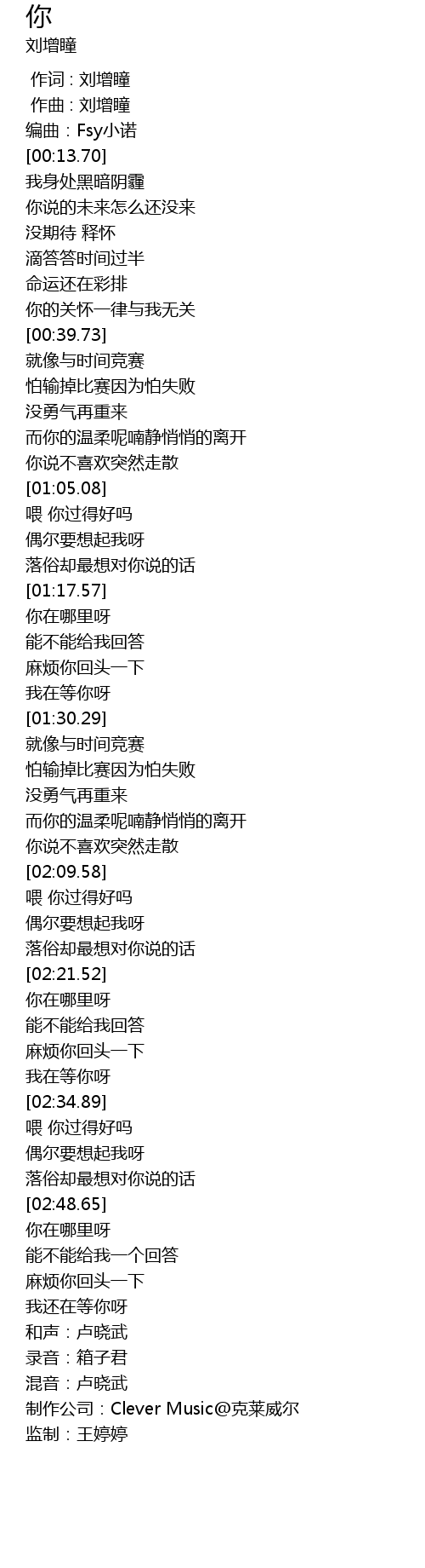 | [00:00.000] | 作词 : 刘增瞳 |