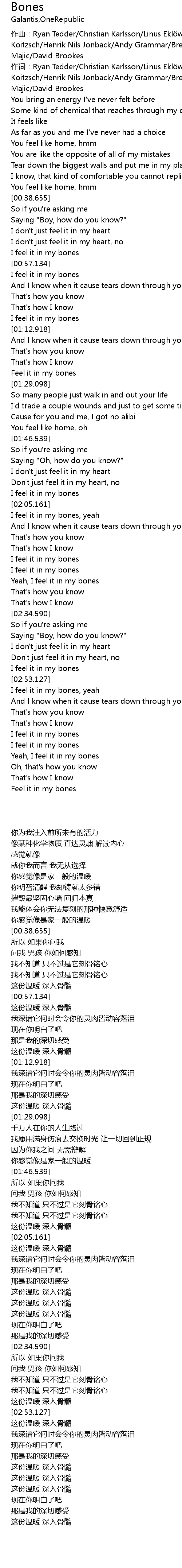 | [00:05.844] | 作词:Ryan Tedder/Christian Karlsson/Linus Eklöw/Jimmy Koitzsch/Henrik Nils Jonback/Andy Grammar/Brett McLaughlin/Justin Franks/Danny Majic/David Brookes |
