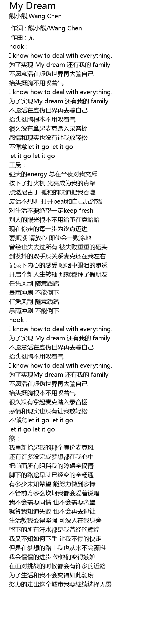 | [01:44.120] | 为了实现My dream 还有我的 family |