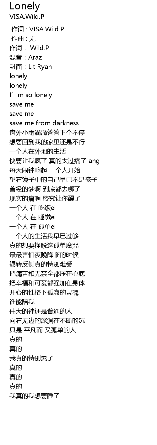 | [00:00.000] | 作词 : VISA.Wild.P |