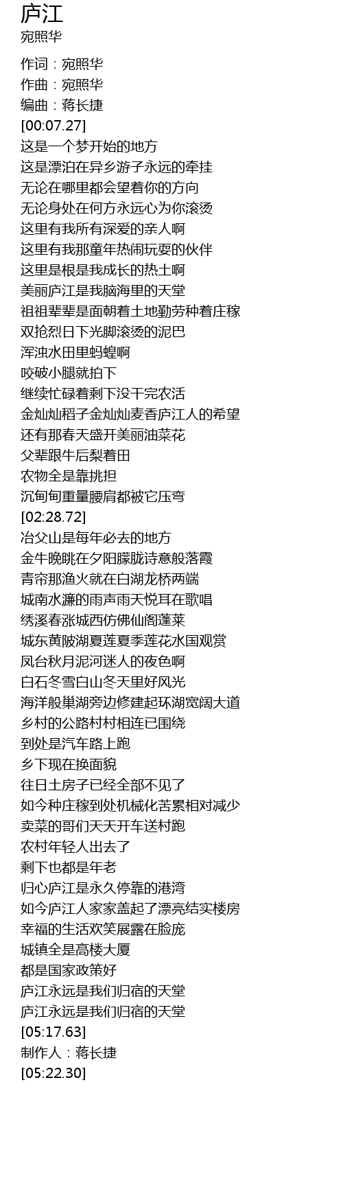 | [05:04.97] | 庐江永远是我们归宿的天堂 |