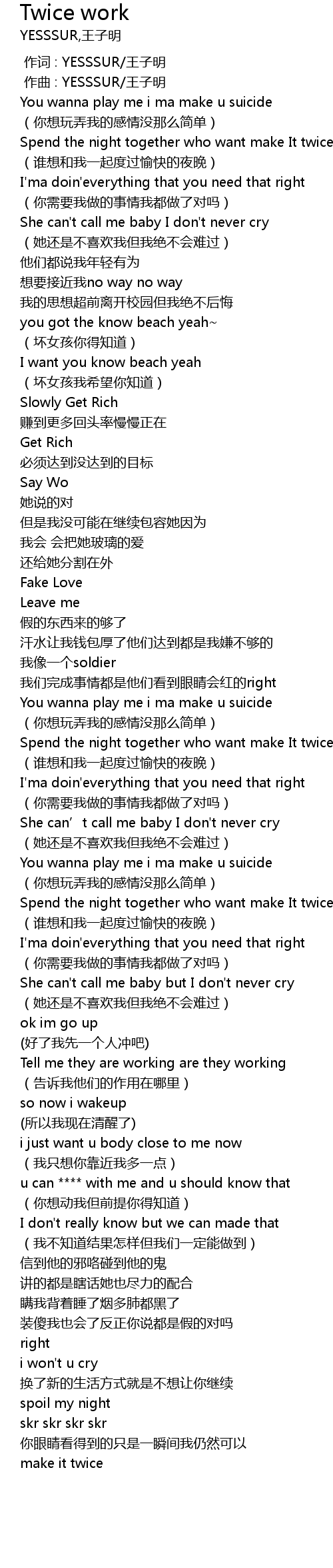 | [00:00.000] | 作词 : YESSSUR/王子明 |