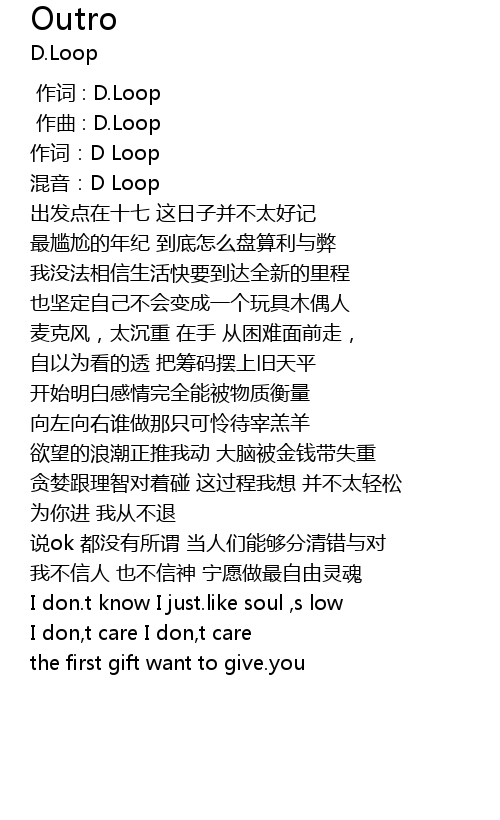 | [00:00.000] | 作词 : D.Loop |