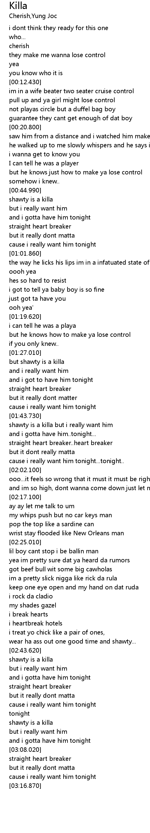 | [01:43.980] | shawty is a killa but i really want him |