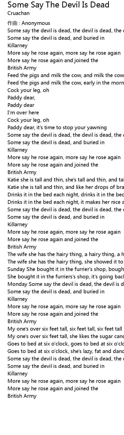 | Some say the devil is dead, the devil is dead, the devil is dead | |