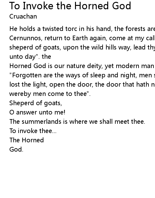 He holds a twisted torc in his hand, the forests are his ruling land. "Great god Cernunnos, return to Earth again, come at my call and show thyself to men, sheperd of goats, upon the wild hills way, lead thy lost flock from darkness unto day". the |