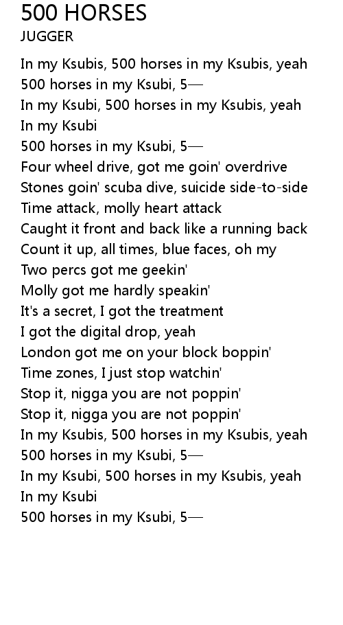 | [00:42.63] | 500 horses in my Ksubi, 5 |