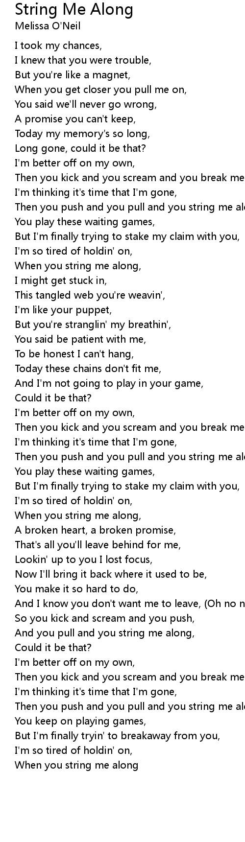 And you pull and you string me along, |