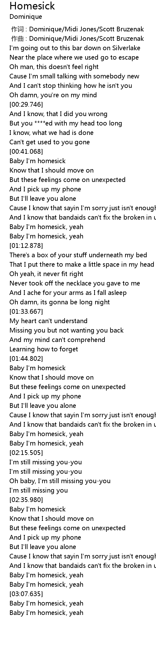 | [00:41.208] | Baby I' m homesick |