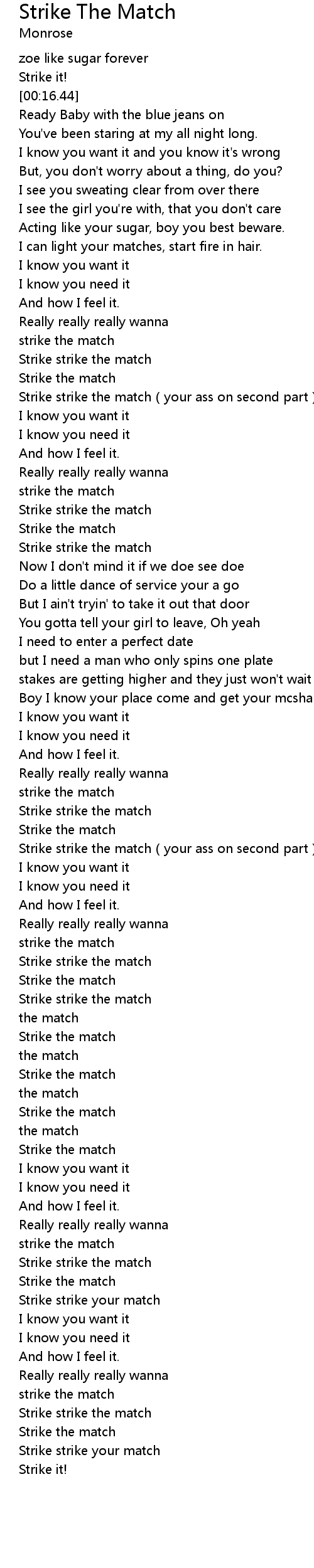 | [01:56.44] | Strike strike the match(your ass on second part) |