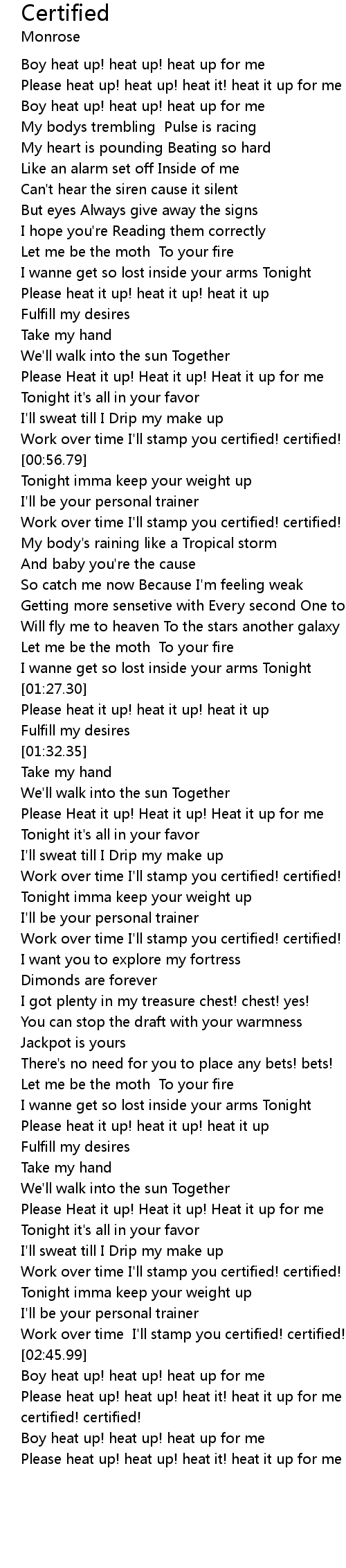 | [02:41.56] | Work over time I'll stamp you certified! certified! |