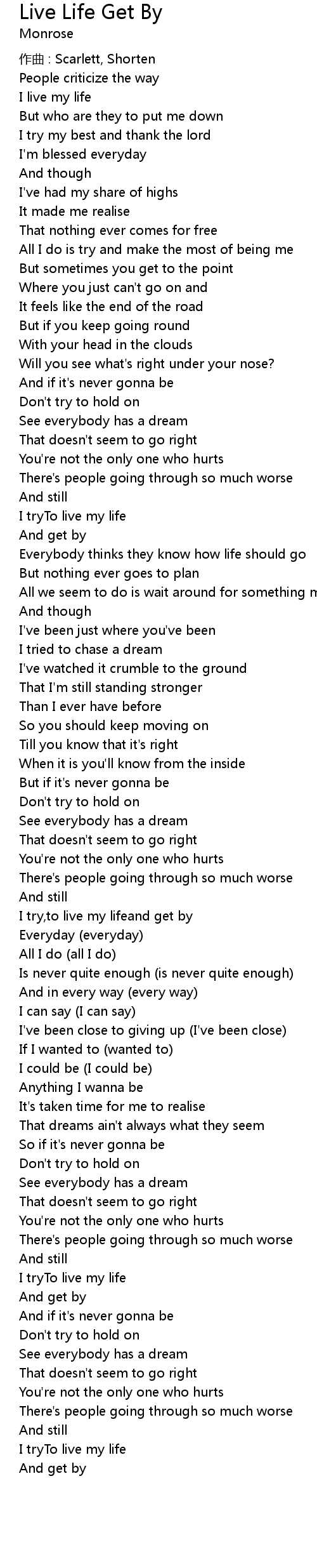 | 歌曲 | Live Life Get By |