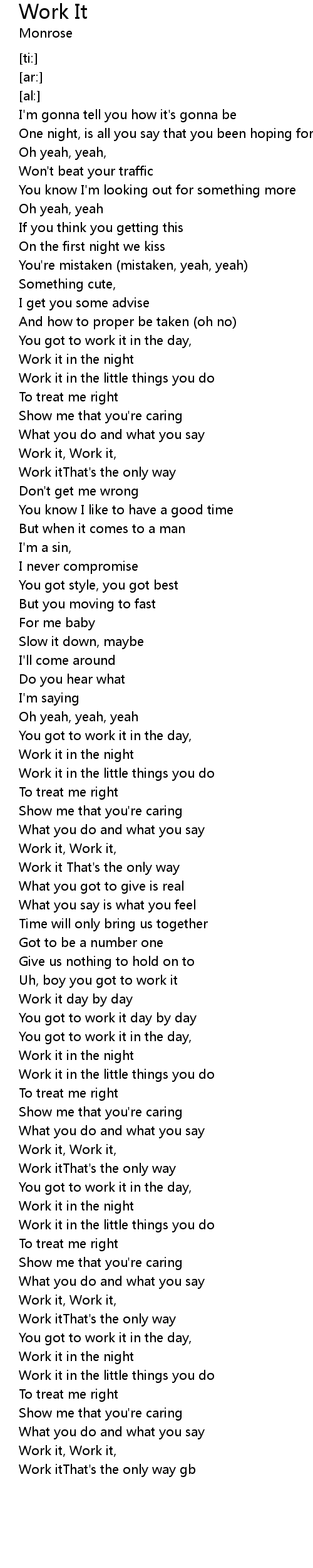 Work it, Work it, |