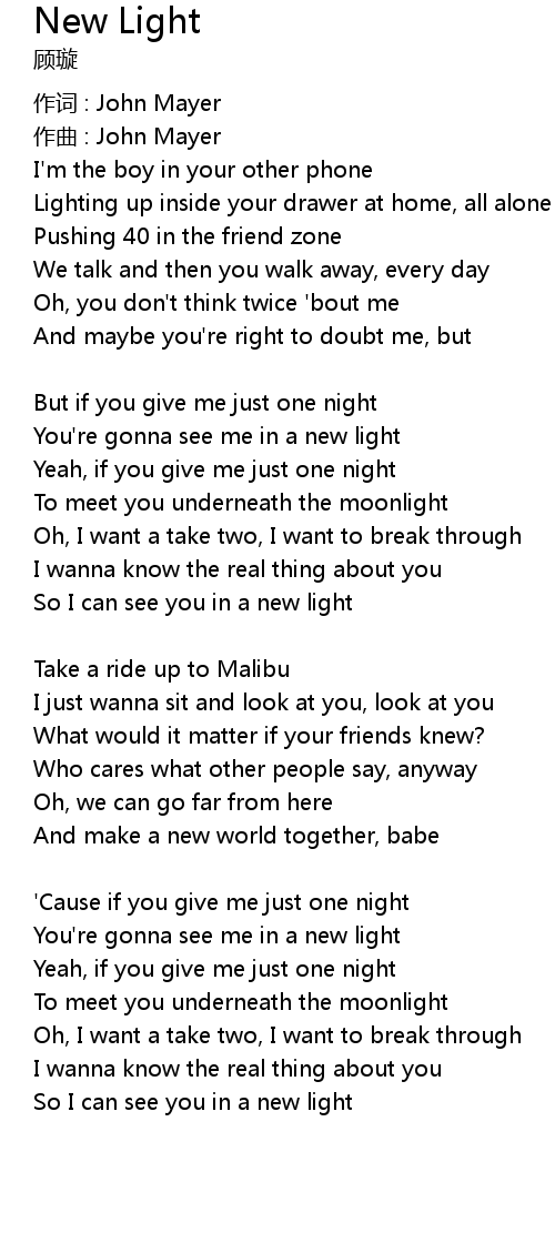 | 作词 : John Mayer | |