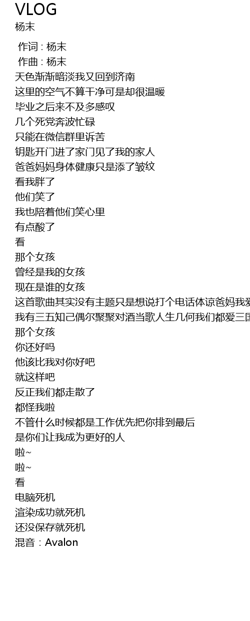 | [00:01.000] | 作曲 : 杨末 |