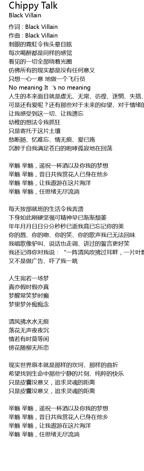 | 我唱歌像驴叫、说话也走调、讲过的誓言更好笑 | |