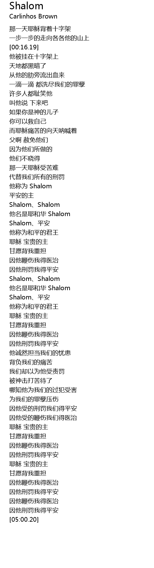| [02:22.04] | 他名是耶和华 Shalom |