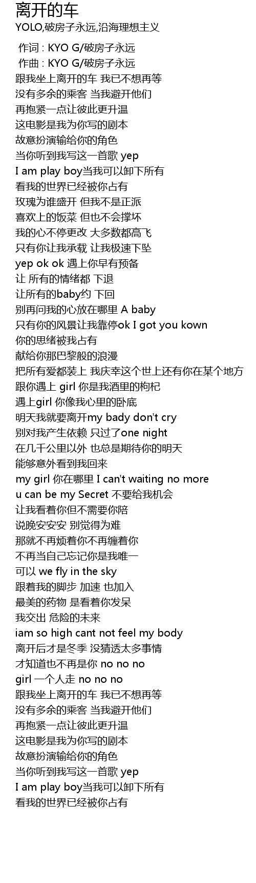 | [00:17.732] | gēn wǒ zuò shàng lí kāi de chē wǒ yǐ bù xiǎng zài děng |