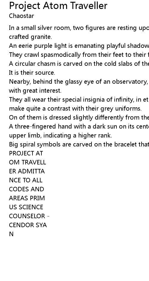 | They all wear their special insignia of infinity, in ethereal necklaces that make quite a contrast with their grey uniforms. | |