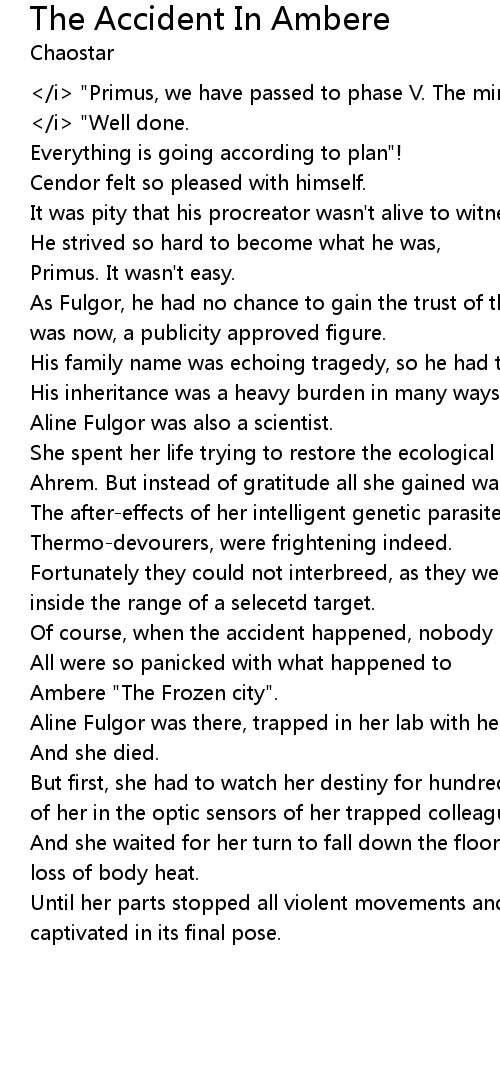 | But first, she had to watch her destiny for hundreds times, unfolding in front of her in the optic sensors of her trapped colleagues. | |