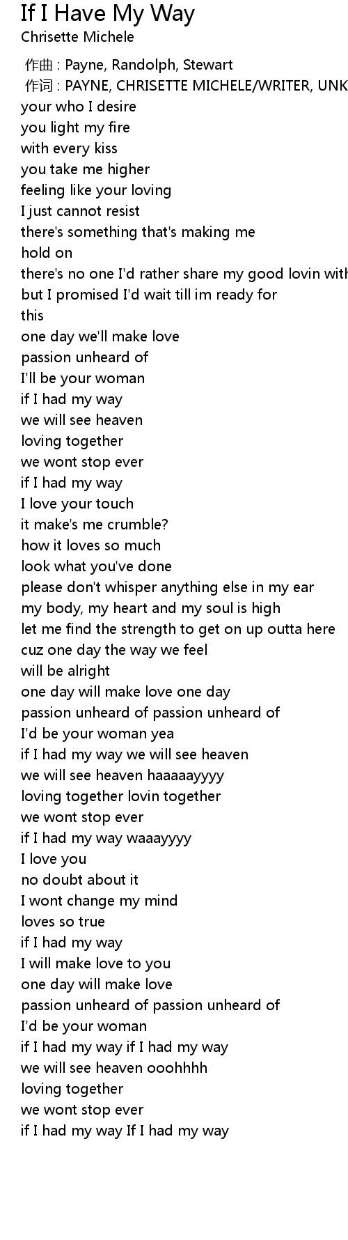 | 歌曲 | If I Have My Way |
