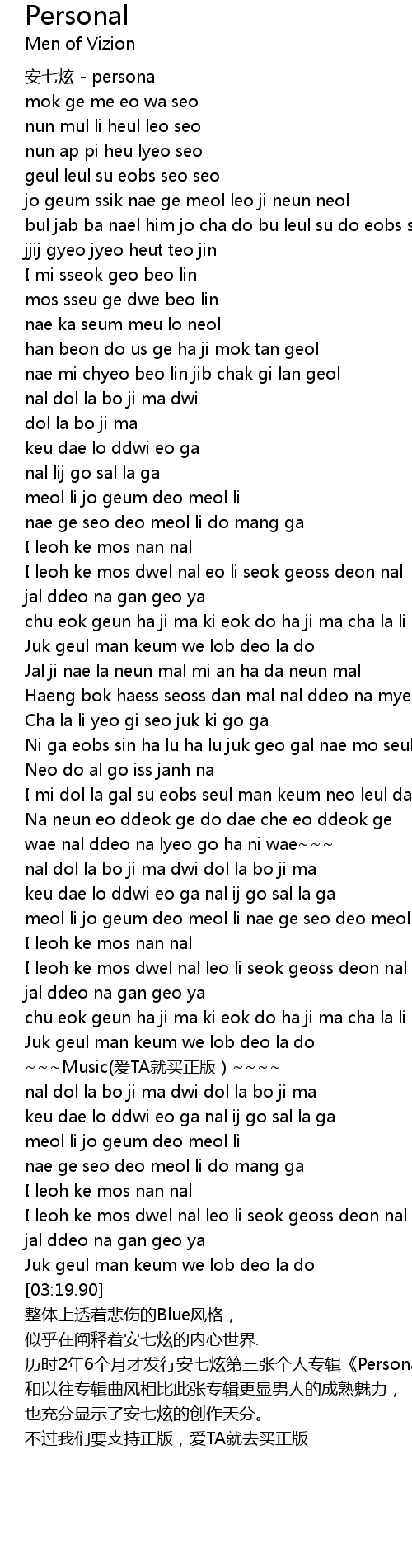 | [00:00.00] | 安七炫 - persona |