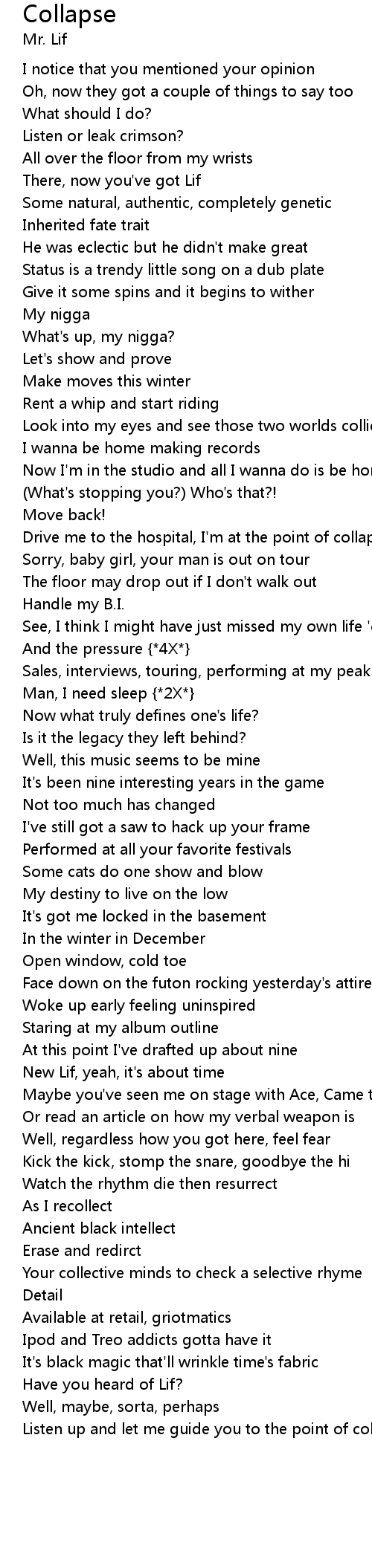 | Listen up and let me guide you to the point of collapse |