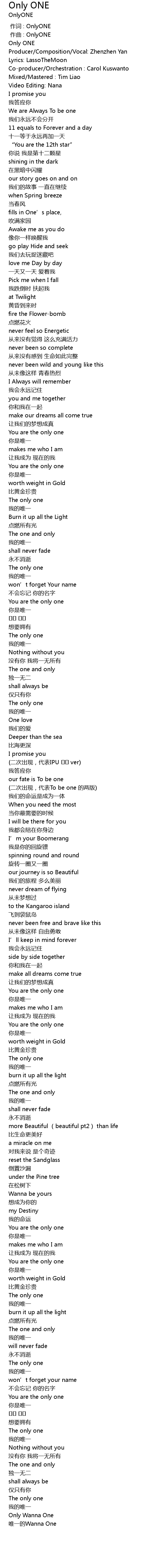 | [00:00.000] | zuò cí : OnlyONE |