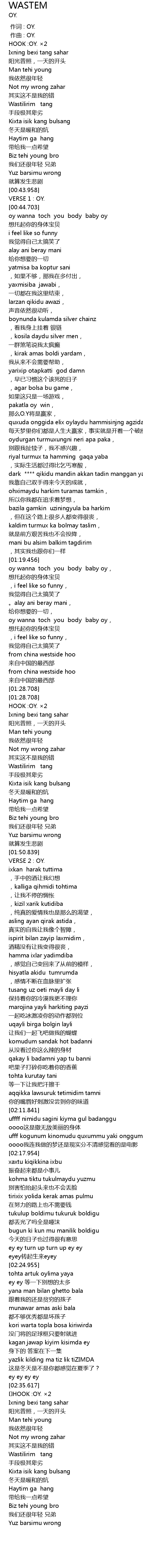 | [00:00.000] | 作词 : OY. |