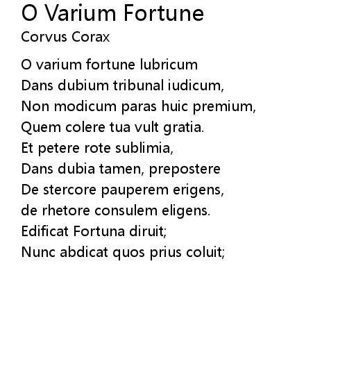 | 歌曲 | O Varium Fortune |