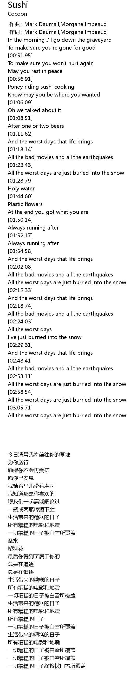 | [02:53.73] | All the worst days are just burried into the snow |