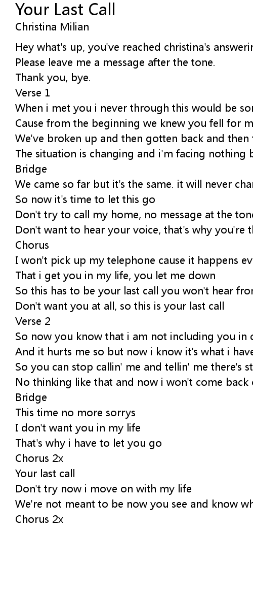 | So you can stop callin' me and tellin' me there's still us or we | |