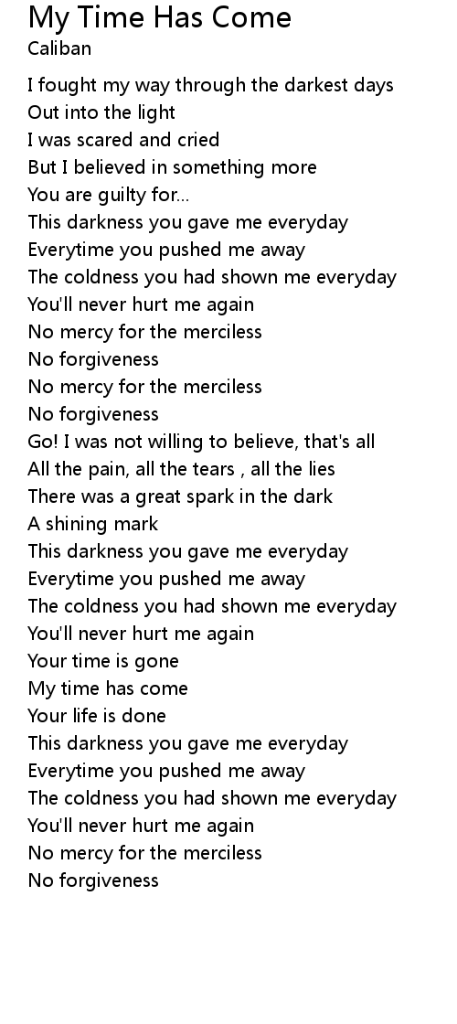 My time has come |