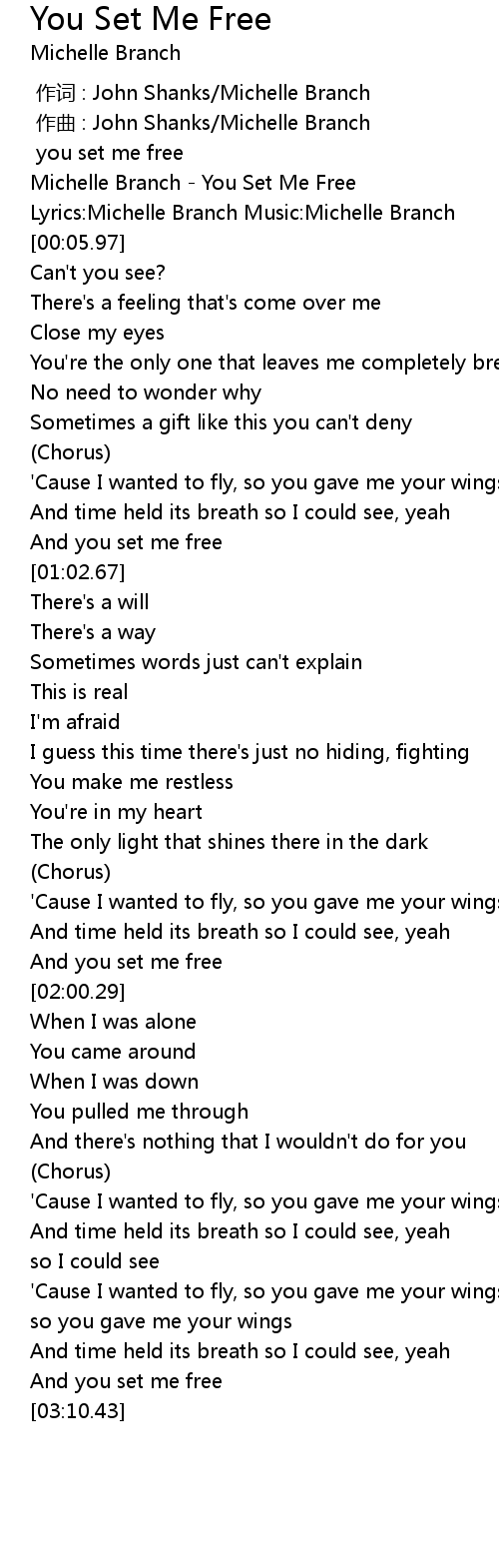 | [00:02.55] | Michelle Branch - You Set Me Free |