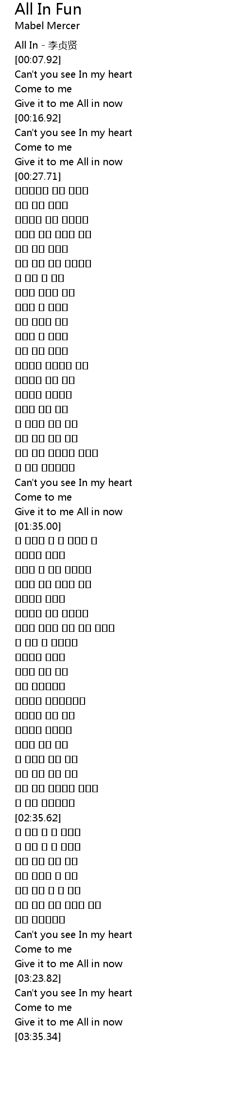 | [03:30.51] | Give it to me All in now |