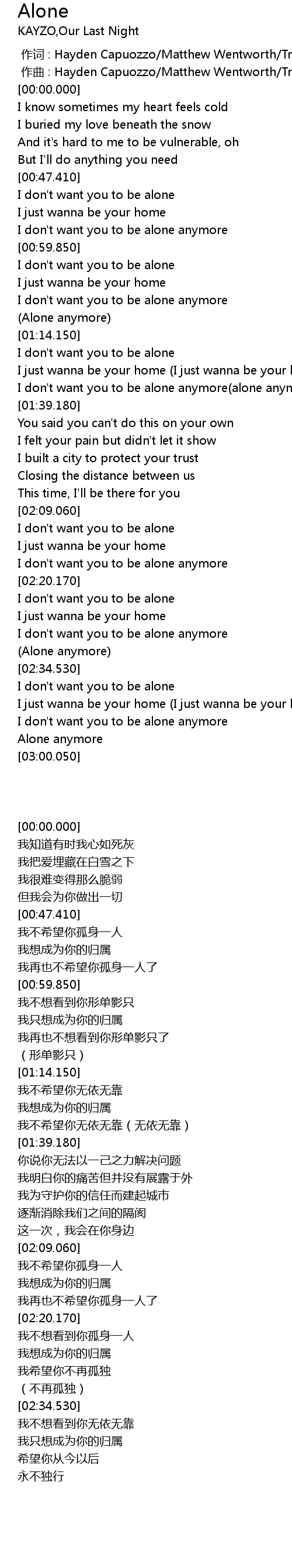 | [01:31.790] | I don't want you to be alone anymore(alone anymore) |