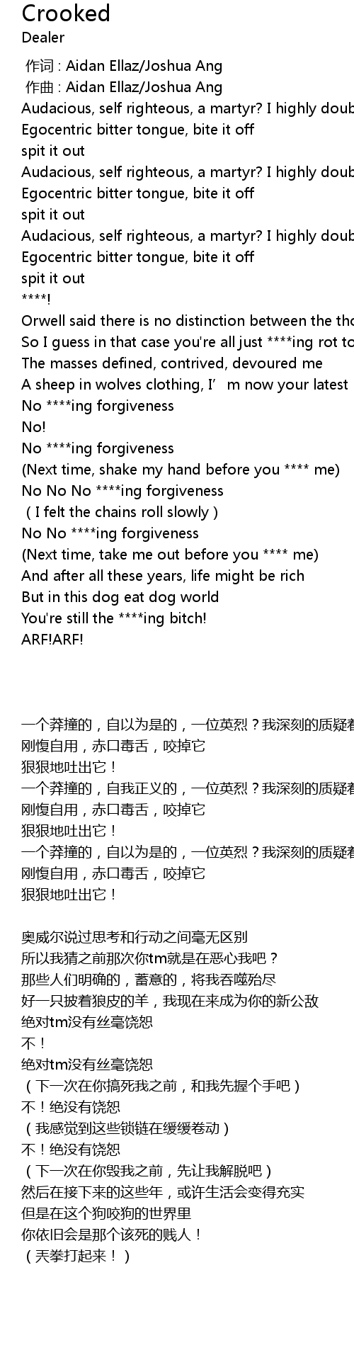 | [01:08.04] | No ****ing forgiveness |