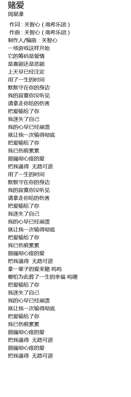 | [02:31.49] | 拿一辈子的爱来赌 呜呜 |
