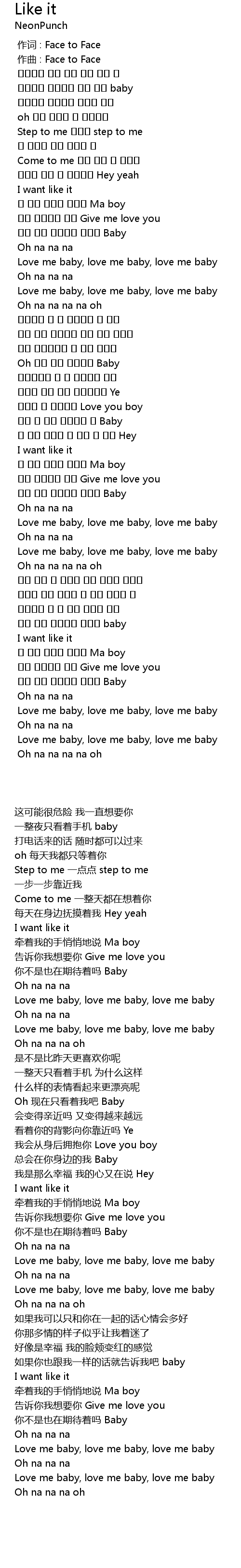 | [02:14.425] | Love me baby, love me baby, love me baby |