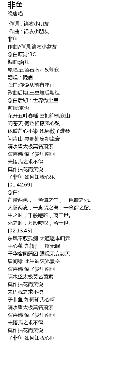| [00:01.77] | 非鱼 |