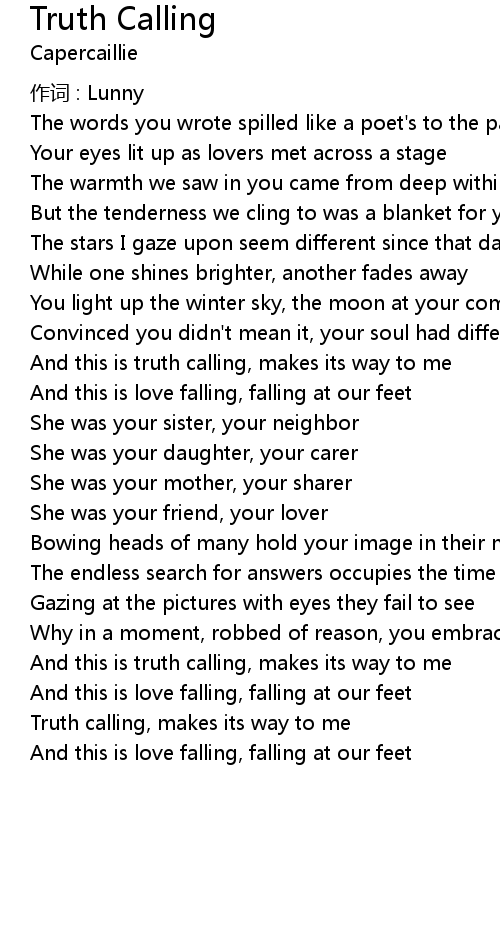 | Truth calling, makes its way to me | |