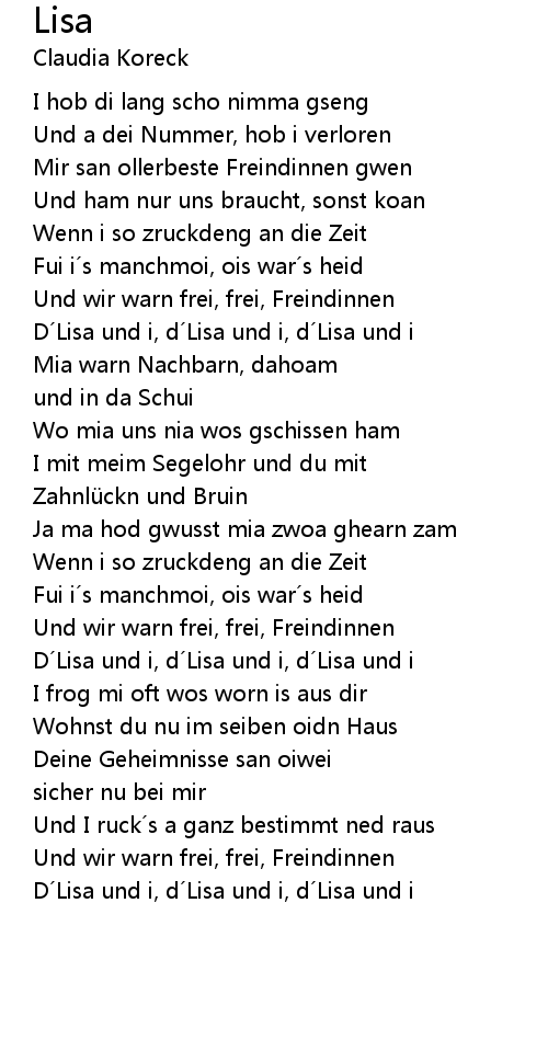 | D Lisa und i, d Lisa und i, d Lisa und i |