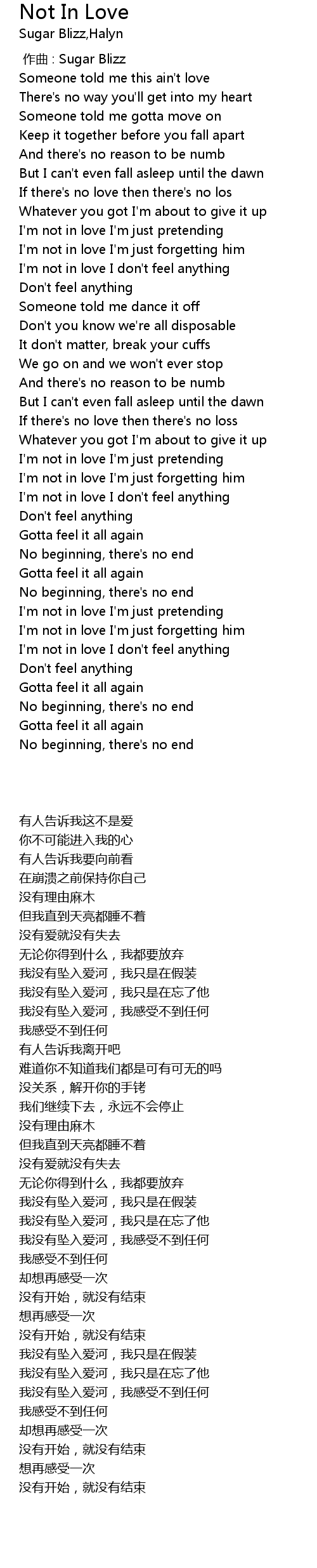 | [00:50.87] | I'm not in love I don't feel anything |